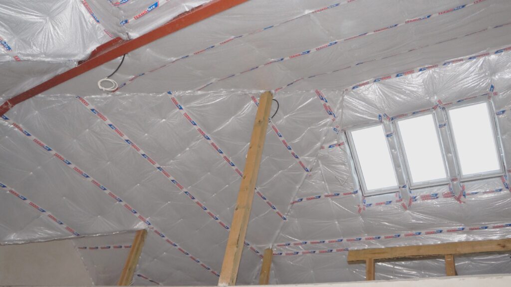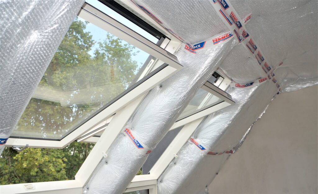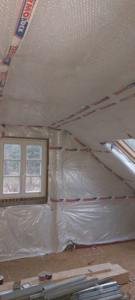 Można łączyć z innymi materiałami izolacyjnymi zamiast folii paroizolacyjnej – mata Termolock® doskonale współpracuje z tradycyjnymi materiałami termoizolacyjnymi, takimi jak wełna mineralna czy piana PUR. Dzięki swojej budowie z warstwą odbijającą promieniowanie cieplne może z powodzeniem zastępować folię paroizolacyjną, jednocześnie wzmacniając efekt termoizolacyjny. To rozwiązanie, które pozwala na stworzenie skutecznego i wielowarstwowego systemu izolacji – zarówno w nowych, jak i modernizowanych budynkach. Jednocześnie poprawiając komfort użytkowania pomieszczeń nieużytkowych.