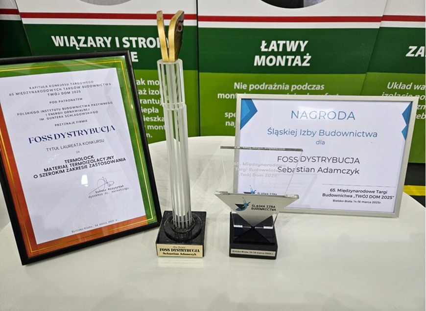 W FOSS DYSTRYBUCJA wierzymy, że jakość sama się obroni – ale zawsze miło, gdy potwierdzają ją również niezależne instytucje, jury konkursowe oraz eksperci z branży budowlanej. Dlatego z dumą prezentujemy wyróżnienia, które otrzymaliśmy za innowacyjne podejście, rozwój technologii izolacyjnych oraz wkład w nowoczesne budownictwo energooszczędne.