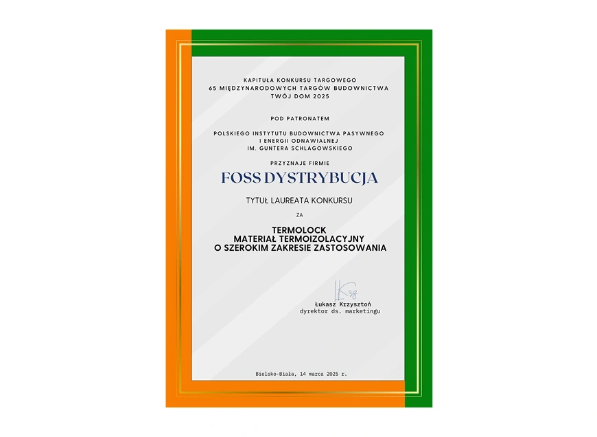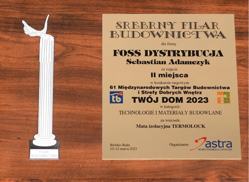 W 2025 roku przyznano nagrodę główną w kategorii materiały budowlane - izolacje. Mimo dużej konkurencji, nasze maty Termolock® zostały wyróżnione na tle innych producentów